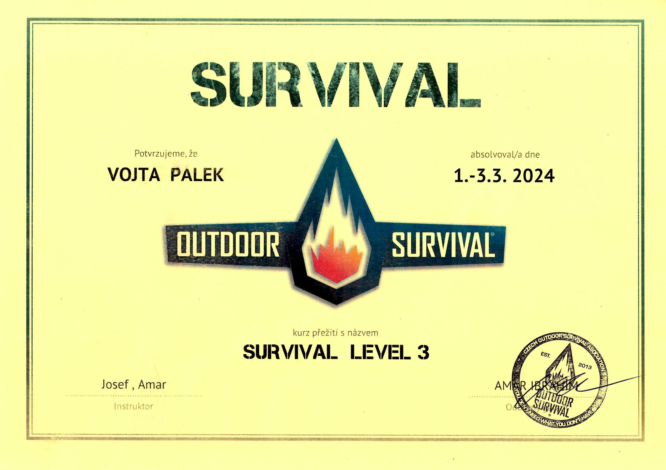 Když jsem dokončil 2. úroveň, tak jsem vůbec nevěděl, kdy půjdu na další pokračování. Jestli hned na jaře, anebo až další rok. Stále jsem váhal. Trvalo mi bez mála tři měsíce, než jsem se definitivně rozhodl a přihlásil se. Přihlášení opět proběhlo tak, že jsem odpověděl na email od Amara s novými termíny pro rok 2024. Jak jsem vypozoroval, tak kurz Outdoor Survival 3 se koná zpravidla 1x za rok a to začátkem března. Náplň kurzu je opět náročnější než u předchozí úrovně. Pokročilá navigace v terénu a to i bez použití mapy a kompasu. Nouzové řešení krizových situací jako je chlad a vlhko. Získávání potravy v nepříznivých podmínkách. Improvizovaná první pomoc. Zdolávání neočekávaných přírodních překážek. Nouzová komunikace. Výroba nástrojů pro přežití a improvizované rozdělávání ohně. Součástí kurzu by také mělo být vysazení v bodě A a přesun do bodu B, bez cizí pomoci, bez vybavení, vody a jídla. Alespoň, tak to je napsáno v kalendáři u termínu kurzu. Seznam vybavení u popisu kurzu je velice stručný. Není tam nic. Ani nůž, ani křesadlo, ani čutora. Trochu jsem doufal, že vybavení bude upřesněno spolu s informačním emailem. Co se týče oblečení, tak oproti předchozímu kurzu, jsem plánoval pouze jednu změnu. A to místo bundy Bushman si vzít bundu Delta OL 4.0 od značky UF-PRO, která je výrazně teplejší, má odolnost proti vodě a větru a neomezuje tolik v pohybu. Přesně 2 týdny před konáním kurzu přišel informační email a v něm byl seznam vybavení: čutora s kovovým pítkem a s obalem na opasek, křesadlo, nůž, čelovka, izotermická folie, pončo, KPZ, rukavice a vhodné oblečení do přírody. Vše na opasku, v kapsách anebo v ledvince. Tedy prakticky to samé jako na předchozí kurz. Rozhodně jsem nepočítal s tím, že bych si bral s sebou celou KPZ, tak jako minule, ale spíše, že si z ní udělám pouze výběr toho nejnutnějšího, co bych mohl potřebovat: cukr, sůl, žvýkačky, tablety iontového nápoje, provázek, smolné dřívko a náhradní baterie do čelovky. A samozřejmě také psací potřeby. Ten samý email dostalo celkem 12 lidí, a tak jsem byl zvědavý, kolik se nás z těchto 12lidí v pátek 1. března v 18:00 sejde na Pleši. Přípravu na kurz jsem bral vážně. Od minulého kurzu, který se konal na konci října předchozího roku, jsem pokračoval v otužování se sprchováním studenou vodou. Na konci ledna jsem začal trénovat nohy, takže jsem každý týden od pátku do neděle, a když jsem měl čas tak až do pondělí, každý den chodil. Začínal jsem na 10km za den a 30km za víkend a dostal se až k 15km za den a téměř 60km za prodloužený víkend. Před kurzem jsem tak za 5 víkendů dohromady nachodil více než 220km. Po předchozích kurzech, jsem nabyl přesvědčený, že bude lepší, jet na tento kurz už trochu vyhladovělý a přivyklý na nižší příjem, než se ještě v pátek odpoledne pořádně nacpat a pak v sobotu večer trpět hlady. To jestli to bylo správné rozhodnutí, se teprve ukáže. V sobotu před kurzem jsem proto výrazně omezil příjem sacharidů a množství přijaté potravy vůbec. Ráno lehká snídaně v podobě jogurtu, ve dvě hodiny skromný oběd a večer chudá večeře v podobě např. banánu a mezi tím vůbec nic. K pití jen voda anebo neslazený čaj. Cílem bylo co nejvíc smrsknout žaludek a přivyknout si na výrazně menší příjem potravy. Za týden jsem zhubnul o 4kg, takže jsem věřil, že se mi to povedlo. V rámci přípravy jsem se ještě stačil podívat na zajímavý film Sněžné bratrstvo, přečíst si poznámky z předchozích kurzů a ještě jednou si přečíst Amarovu knihu Kurz přežití. Pak již jen stačilo psychicky se připravit na hlad, zimu, únavu a nevyspání a mohl jsem vyrazit. Podle předpovědi počasí z pondělí před kurzem, by počasí mělo být lepší než při předchozím kurzu. Přes den 11°C, ranní minima kolem 6°C. Oblačno, ale bez deště a téměř bez větru. Byl jsem zvědavý, jak se meteorologům předpověď povedla. Když jsem v pátek přijel na místo setkání, tak byla docela velká mlha. Zaparkoval jsem u penzionu. Oblékl si další vrstvy oblečení a šel za Amarem a Pepou, kteří netrpělivě vyhlíželi další účastníky. Zaplatil jsem, odevzdal klíče od auta a telefon a přidal se k dalším čekajícím účastníkům. V 18 hodin jsme byli všichni, tedy 10. Rozdělili jsme se do dvou skupin. Nafasovali jsme dvě mapy a buzoly, lékárničku, mačetu a pilu, lopatku a vysílačku a ještě nějaké drobnosti. Každá skupina dostala místo na mapě kam se má dostat. Pochopitelně, že jsme se museli přesunovat mimo komunikace a to tak, abychom byli co možná nejméně nápadní. Což vzhledem k mlze a tmě, která se na nás snesla, nebylo zase tak obtížné. Snažili jsme se vyhýbat mokřadům a až na jednoho z nás se nikdo nikam nezabořil. Dorazili jsme téměř do cíle, ale nemohli jsme najít ani Amara, ani Pepu. Ty se již začali ozývat ve vysílačce a tak nás trochu navedli. Asi ve 20 hodin jsme je našli a nakonec se ukázalo, že došlo k nedorozumění v zadávání cíle. Protože cíl měl být cca 70m od hrany lesa, ale nějak nám uniklo, že směrem do lesa a nikoli na louku, kde jsme ho celou dobu hledali. Hlavní ale bylo, že jsme se nakonec našli. Na místě kam jsme dorazili, měla naše skupina strávit noc. Takže jsme nejdříve museli nanosit dříví a rozdělat oheň. Což nebylo tak snadné, protože vše bylo úplně mokré. Zároveň jsme si začali připravovat místo na spaní. Byla to taková děravá ohrada, ale minimálně nějaké stěny a část plachty na střeše to mělo, takže jsme se rozhodli to upravit. Utěsnili jsme stěny, vymetli zevnitř spoustu odpadků, zakryli jsme dalš